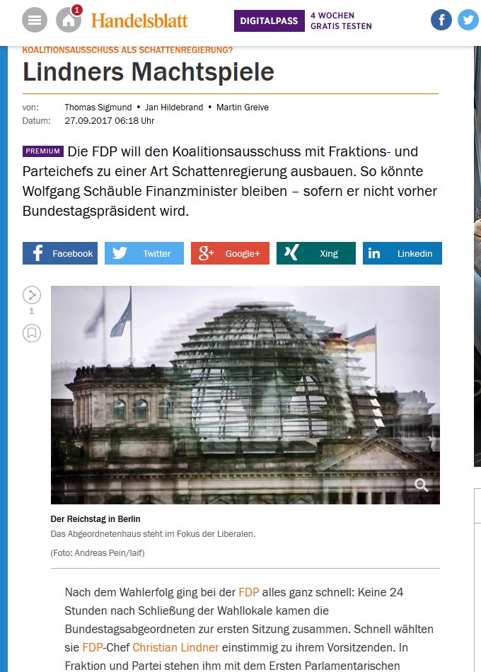 Η οικονομική εφημερίδα σημειώνει ότι «στο FDP προετοιμάζονται για διαπραγματεύσεις με τους Συντηρητικούς της Α. Merkel με σκοπό τον σχηματισμό κυβέρνησης συνασπισμού.