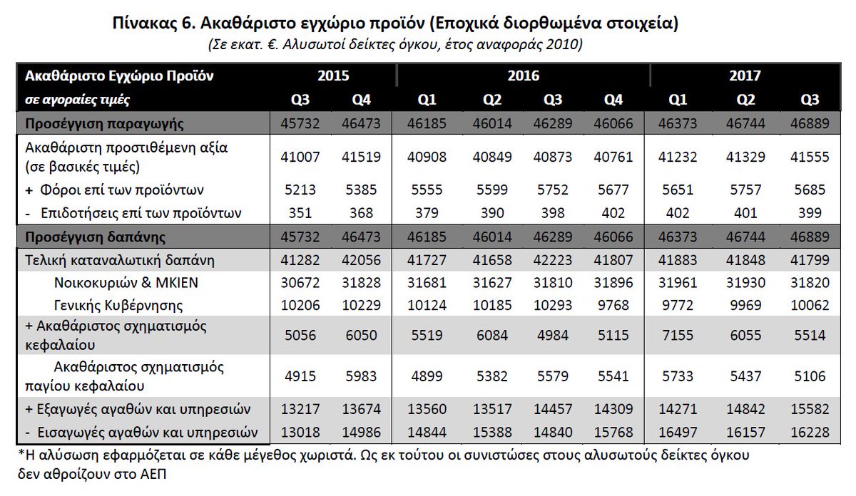 * Η συνολική τελική καταναλωτική δαπάνη παρουσίασε μείωση 1% σε σχέση με το 3° τρίμηνο του 2016.