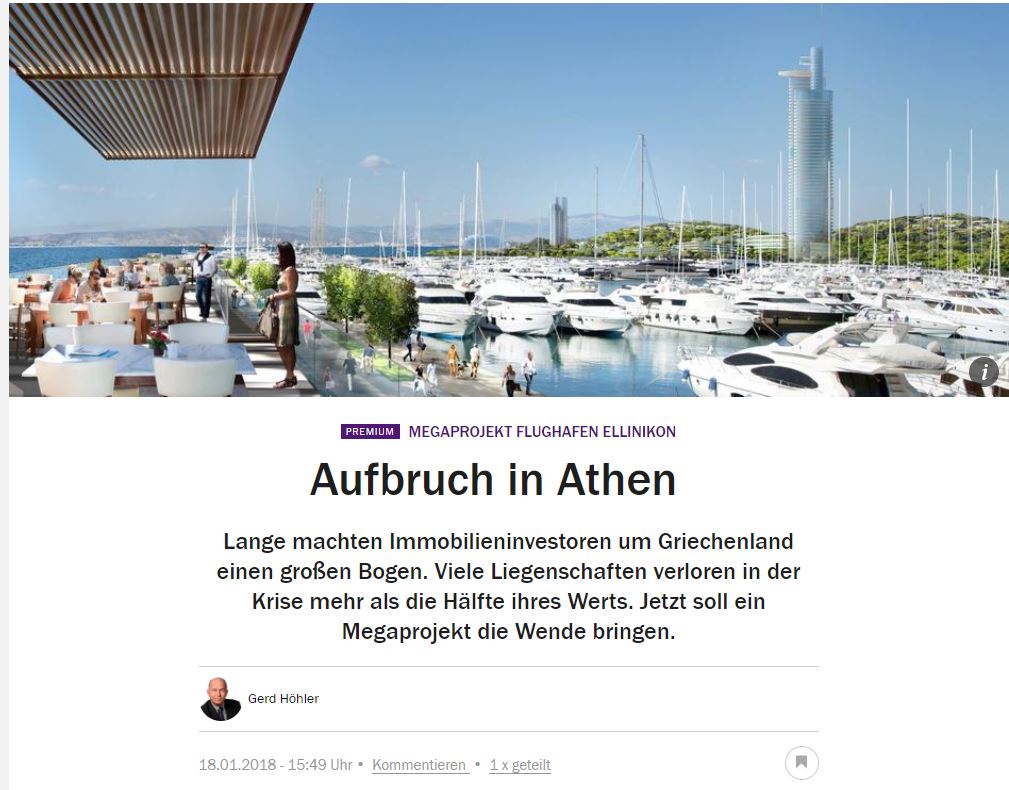 «Με την ανάπτυξη του Ελληνικού, η τράπουλα ανακατεύεται ξανά, το έργο σηματοδοτεί μια σημαντική καμπή για την Ελλάδα» αναφέρει ο Οδυσσέας Αθανασίου, διευθύνων σύμβουλος της Lamda Development στην Handelsblatt, η οποία περιγράφει με κάθε λεπτομέρεια το επενδυτικό πρότζεκτ.