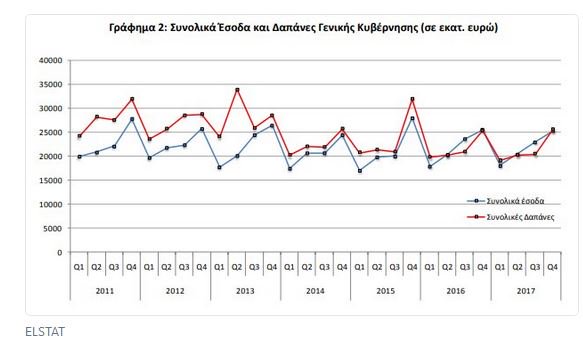 ΕΛΣΤΑΤ: Στα 25,243 δισ. τα έσοδα της Γενικής Κυβέρνησης το δ' τρίμηνο του 2017