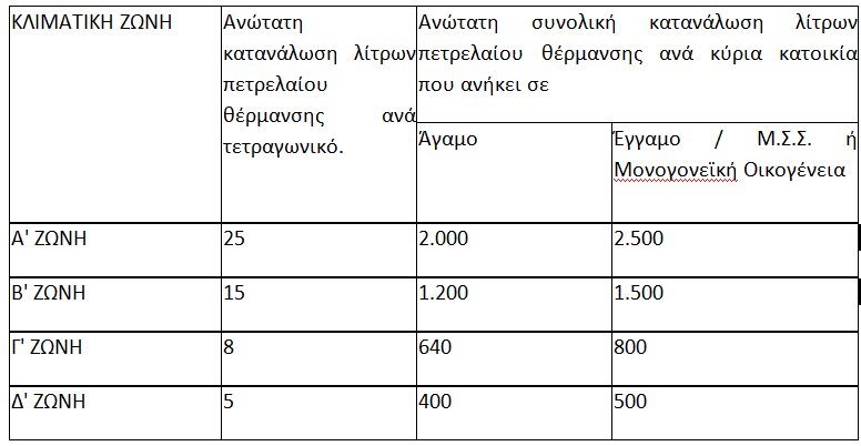 Σημειώνεται ότι όσοι Δήμοι χαρακτηρίζονται ως ορεινοί εντάσσονται στην αμέσως ανώτερη κλιματική ζώνη από αυτήν του νομού στον οποίον βρίσκονται.