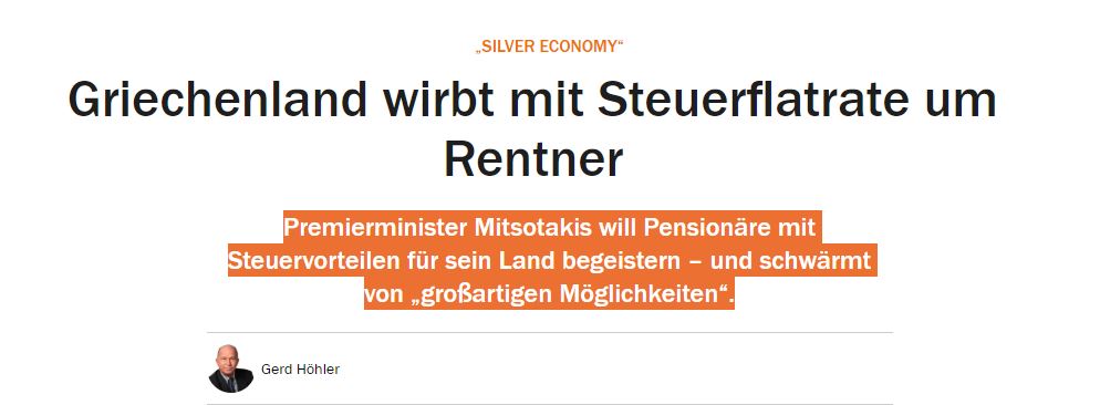 Πρόσκληση σε συνταξιούχους του εξωτερικού προκειμένου να μεταφέρουν τη φορολογική τους κατοικία στην Ελλάδα απευθύνει η κυβέρνηση μέσω του φορολογικού νομοσχεδίου, όπως αναφέρει η γερμανική εφημερίδα Handelsblatt.