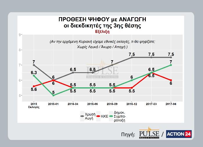 Το 3% προτίθεται να ψηφίσει κάποιο άλλο κόμμα, το 8% των πολιτών δηλώνει αναποφάσιστο και το 3,5% δεν ξέρει – δεν απαντά.