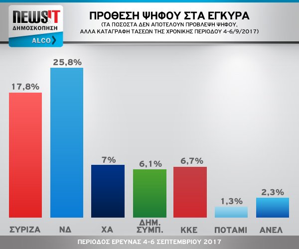 Η δημοσκόπηση έγινε σε δείγμα 1.000 ατόμων από τις 4 έως τις 6 Σεπτεβρίου 2017.