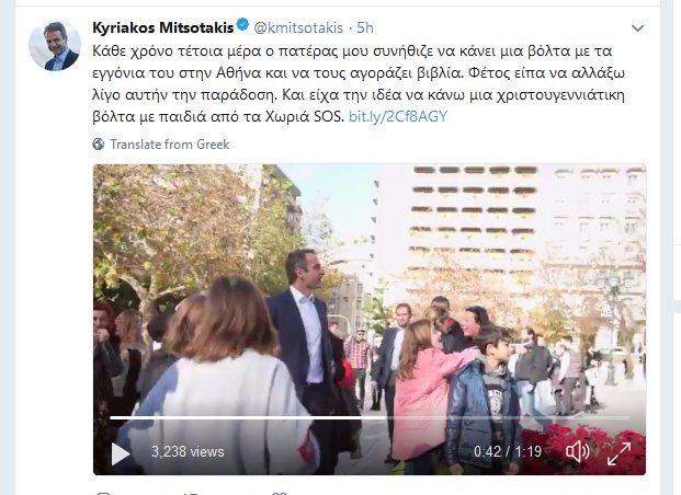 Βόλτα στο κέντρο της Αθήνας με παιδιά από τα χωριά SOS έκανε ο πρόεδρος της ΝΔ, Κ. Μητσοτάκης, ο οποίος ανέβασε και σχετικό βίντεο με πλάνα στον λογαριασμό του στο twitter.