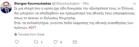 «Σε μια εποχή που η κρίση έχει ήδη δοκιμάσει την αξιοπρέπειά τους, οι Έλληνες δεν μπορούν να αποδεχθούν και τραυματισμό της εθνικής τους υπερηφάνειας, όπως το έκαναν οι δηλώσεις Dimitrov.