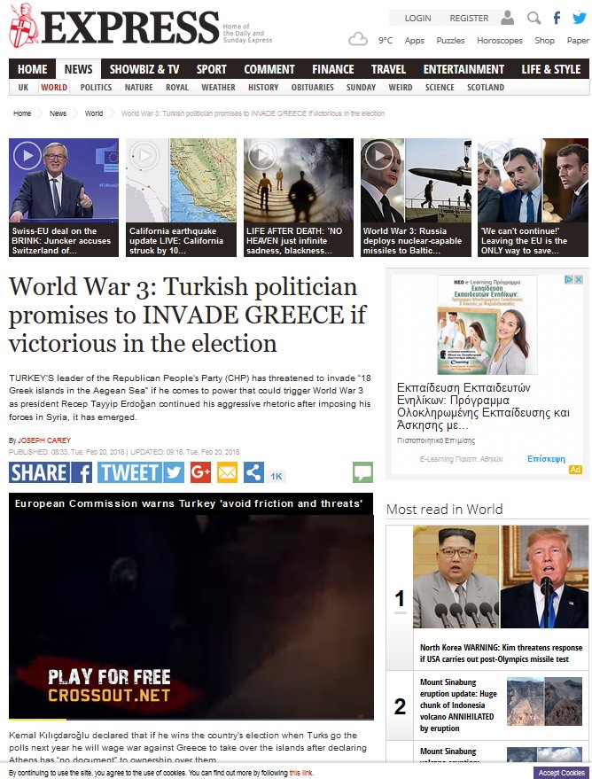 Στο δημοσίευμα γίνεται εκτενής αναφορά στις δηλώσεις του Τούρκου πολιτικού –και επικεφαλής του Λαϊκού Ρεπουμπλικανικού Κόμματος (CHP)- ενώ προστίθεται ότι η επιθετική ρητορική φαίνεται να γίνεται αποδεκτή και από άλλους πολιτικούς στης γειτονικής χώρας, όπως για παράδειγμα τον Meral Akşener.
