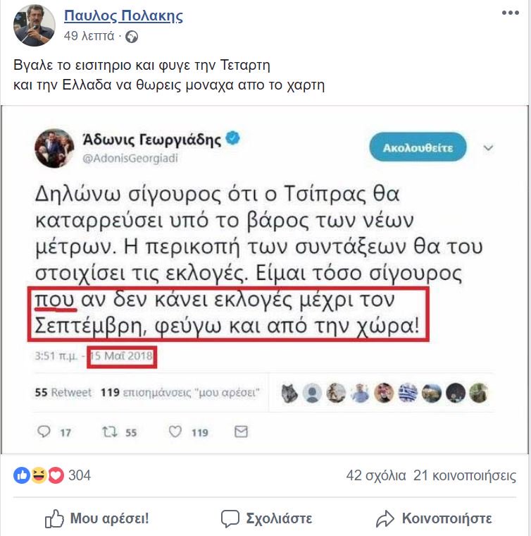 Ειδικότερα, τον Μάιο του 2018, ο αντιπρόεδρος της ΝΔ είχε δηλώσει σίγουρος ότι η κυβέρνηση θα καταρρεύσει υπό το βάρος των νέων μέτρων.