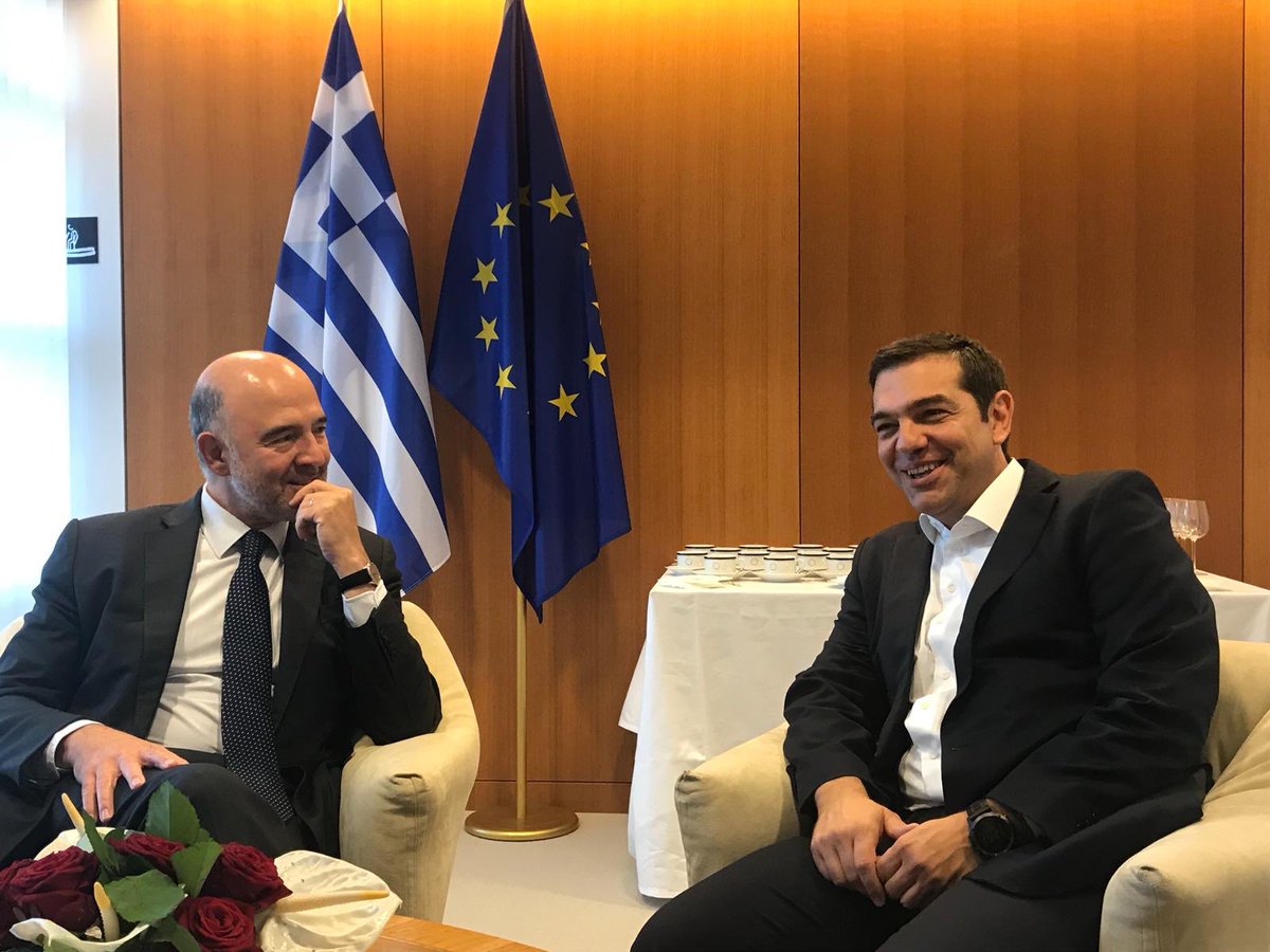 Ο Έλληνας πρωθυπουργός συναντήθηκε στο Στρασβούργο με τον επίτροπο Ευρωπαϊκών Υποθέσεων, Pierre Moscovici