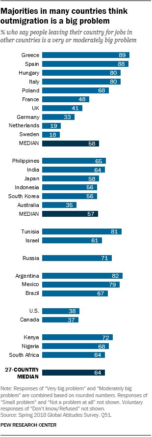 Σημειώνεται ότι στην έρευνα έλαβαν μέρος πολίτες 27 χωρών, με τους Έλληνες να βρίσκονται στην κορυφαία θέση στην αντίθεσή τους για αύξηση της «προσέλευσης» μεταναστών και προσφύγων στη χώρα μας, ενώ ακολουθούν Ούγγροι (72%), Ιταλοί (71%) και Γερμανοί (58%).