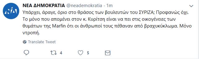 Η ΝΔ κάνει λόγο για θράσος και υπενθυμίζει τα θύματα της Marfin.