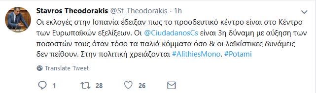 Το εκλογικό αποτέλεσμα στην Ισπανία σχολιάζει ο επικεφαλής του Ποταμιού, Σταύρος Θεοδωράκης.