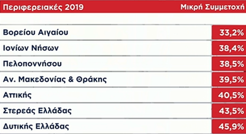 Τα ποσοστά συμμετοχής στις περιφερειακές εκλογές: