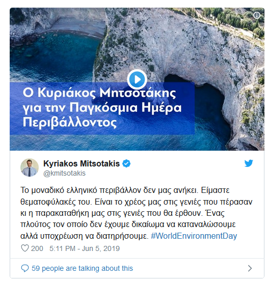 Ανάρτηση του προέδρου της ΝΔ στο Twitter με αφορμή την Παγκόσμια Ημέρα Περιβάλλοντος