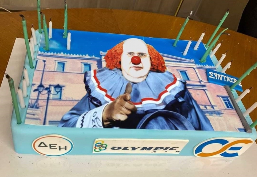Πριν περίπου ένα χρόνο ο Κωστής Χατζηδάκης έβγαλε μία φωτογραφία με μία τούρτα που του έφεραν οι συνεργάτες του, όπου παρουσιάζεται ως σούπερμαν να έχει λύσει τα σύγχρονα προβλήματα της χώρας (ΟΣΕ,ΔΕΗ,Ολυμπιακή, συντάξεις).