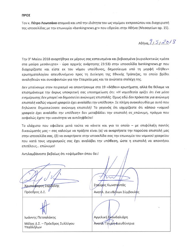 Την επιστολή της Εθνικής Ασφαλιστικής δεν θα σχολιάσουμε