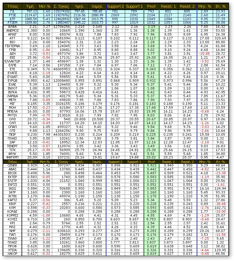 ΓΔ: Κλείσιμο πάνω από τις 790 μονάδες στον ΓΔ μας δίνει αγοραστικό σήμα σε μέρα στον ΓΔ με πιθανότητες να κινηθούμε προς τις 848 μονάδες (ΕΚΛΕΙΣΕ στις 797,13 μονάδες)...