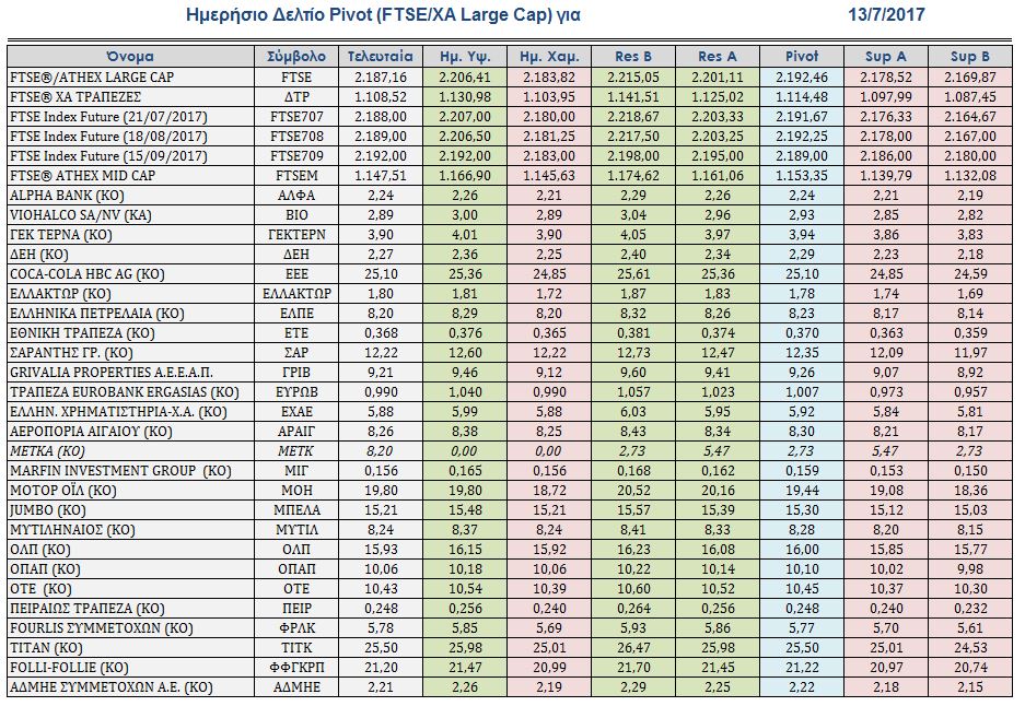 Οι αντιστάσεις της Alpha @2,2400 ευρώ στα 2,2500 και 2,3000 ευρώ και οι στηρίξεις στα 2,1600 και 2,1300 ευρώ.