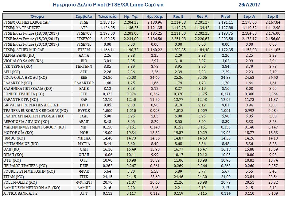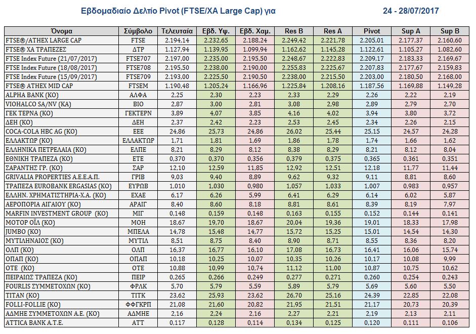 Εβδομαδιαία #Pivots για 24 – 28/07/2017