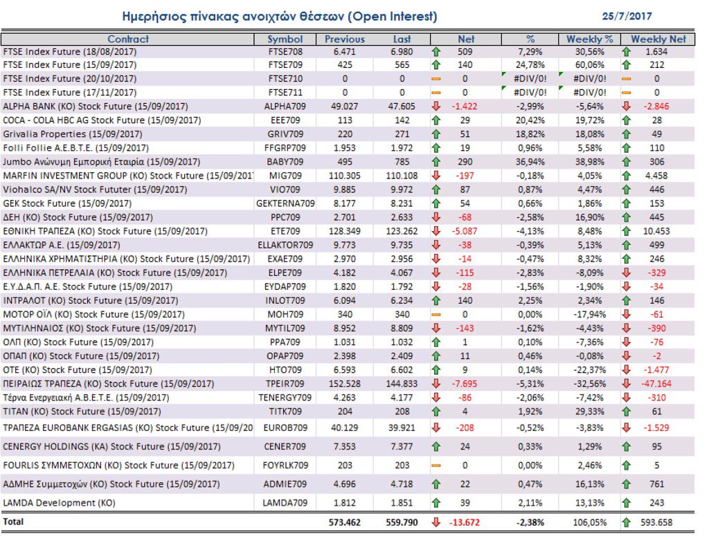 Open Interest Ανοιχτές Θέσεις (25/07/2017)