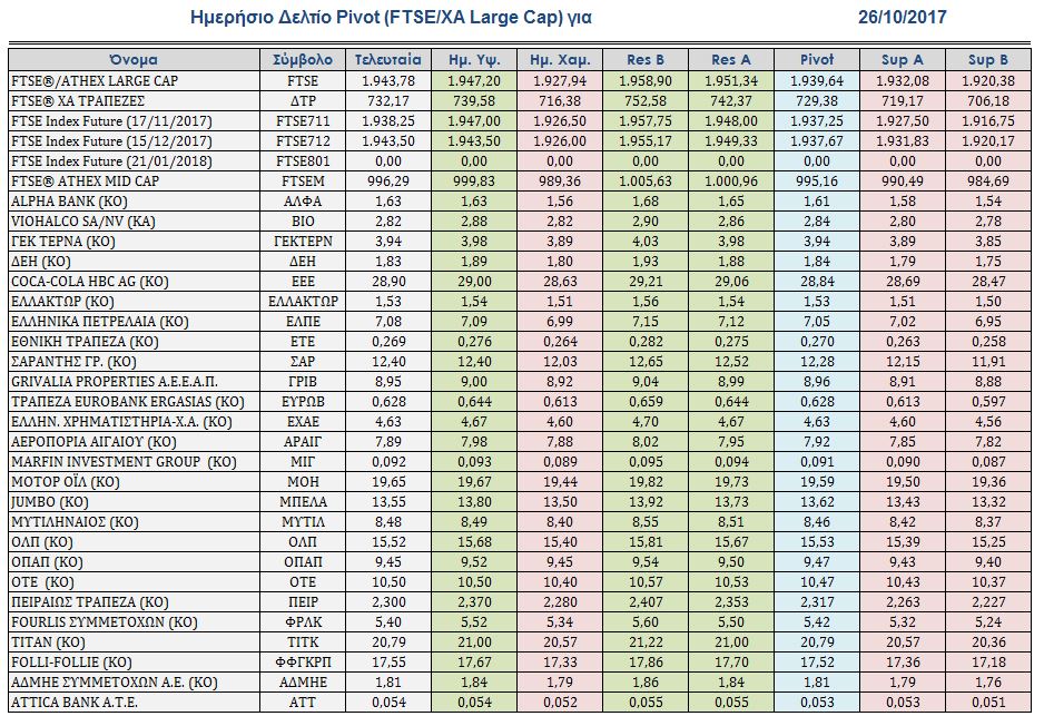 - Η ΑΛΦΑ (+2,52% @ 1,6300 ευρώ) υψηλότερα των 1,80 ευρώ, η Εθνική (@ 0,2690 ευρώ και -1,47% ) υψηλότερα των 0,3130 ευρώ, η Eurobank (@0,6280 ευρώ και -1,4%)υψηλότερα των 0,7640 ευρώ και η Πειραιώς (@2,3000 ευρώ και -3,36%) υψηλότερα των 2,78 ευρώ.
