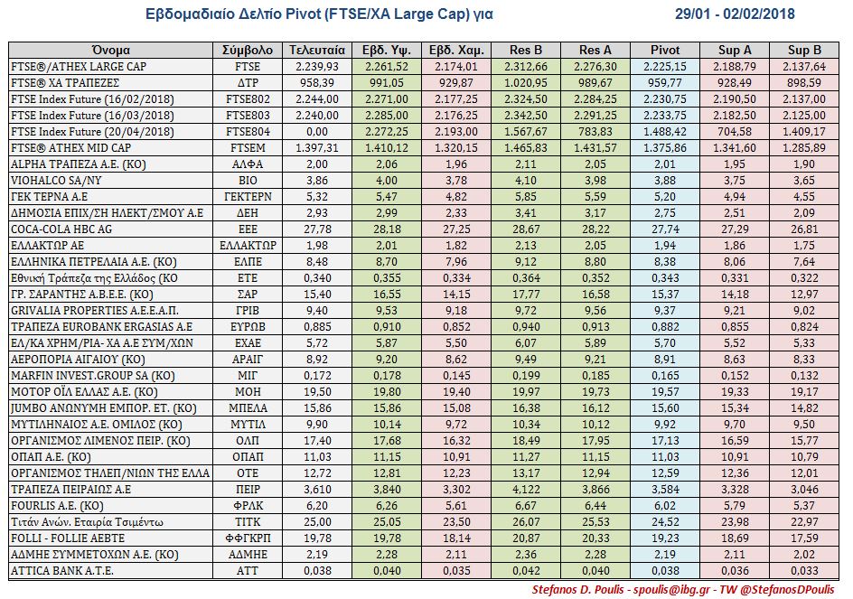 !FTSE25@2251,12 μονάδες: Οι 2230 και 2205 μονάδες αποτελούν τις πλησιέστερες στηρίξεις με την δεύτερη επιθετική όσο κρατάει σε κλείσιμο, ενώ μία διάσπαση μπορεί να μας φέρει στο πολύ σημαντικό 2177. Το stop μας πλέον είναι στο 2140. Το 2262 κοντινή αντίσταση με επόμενο επίπεδο το 2300 και στο βάθος ο μεγάλος στόχος του 2400.