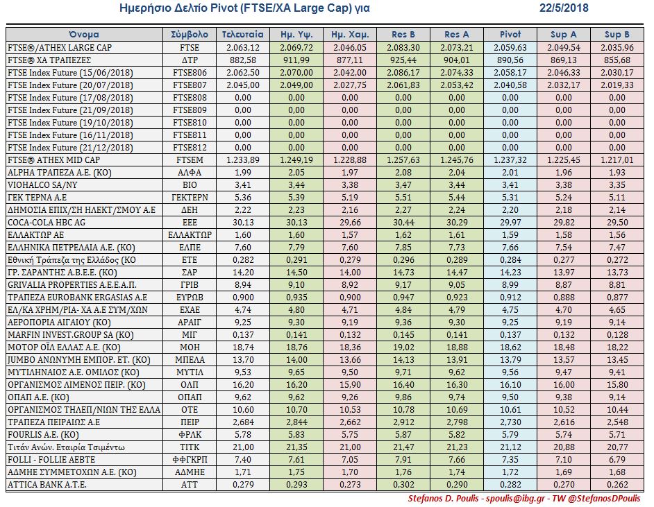 Χ.A: Η βραχυχρόνια τεχνική προσέγγιση για δείκτες και μετοχές πρώτης κατηγορίας.(22/05)
