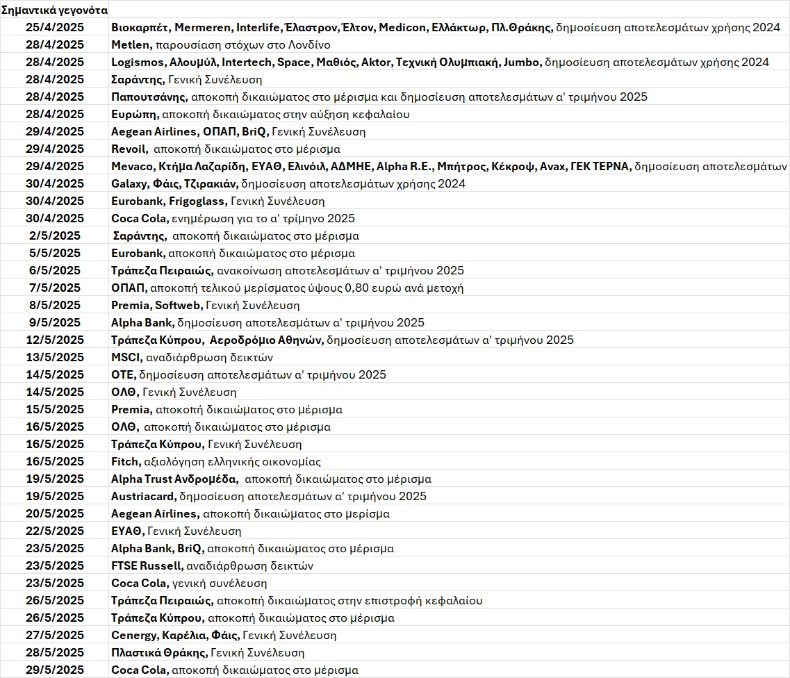 Τα αναγραφόμενα στη στήλη είναι για την ενημέρωση των αναγνωστών και δεν πρέπει να θεωρηθούν ως πρόταση για αγορά ή πώληση μετοχών. Οι πληροφορίες συλλέγονται από αξιόπιστες πηγές αλλά δεν υπάρχει εξασφάλιση ότι είναι πλήρεις ή ακριβείς.