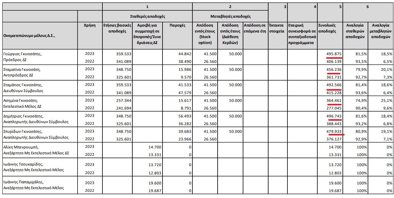 FLEXOPACK: Κορυφαία απογοήτευση για τη στήλη, η απάντηση στο ερώτημα που κάναμε στη διοίκηση για την εντολή πώλησης που υπάρχει εδώ και εβδομάδες στο ταμπλό. Ούτε έχει κάνει κίνηση, ούτε θα κάνει μας απάντησε ο κ.Γκινοσάτης, αναπληρωτής διευθύνων σύμβουλος του ομίλου. Προφανώς και αυτή η εξέλιξη δεν ήταν και τόσο αναμενόμενη. Να αδιαφορούν τόσο οι βασικοί μέτοχοι για τη μετοχή. Δεν έχουμε άλλη λύση, από το να αφαιρέσουμε τη μετοχή από τις επιλογές μας. Φθηνή η μετοχή, αλλά υπάρχουν και άλλες εξίσου φθηνές, που έχουν και διοικήσεις που ενδιαφέρονται έστω και λίγο παραπάνω. Θα ασχοληθούμε και λίγο με τις αμοιβές, γιατί το έθεσε κάποιος αναλυτής. Κοιτάξτε τι αμοιβές πήρε η οικογένεια για το 2023 (για το 2024 δεν έχουν δημοσιευτεί ακόμα). Είναι 9 άτομα στο Δ.Σ. εκ των οποίων τα 6 είναι της οικογένειας Γκινοσάτη. Τα 3 μη εκτελεστικά μέλη δεν παίρνουν πάνω από 20 χιλ. ευρώ. Αλλά οι 6 της οικογένειας πήραν για το 2023 συνολικά 2,8 εκατ. ευρώ.