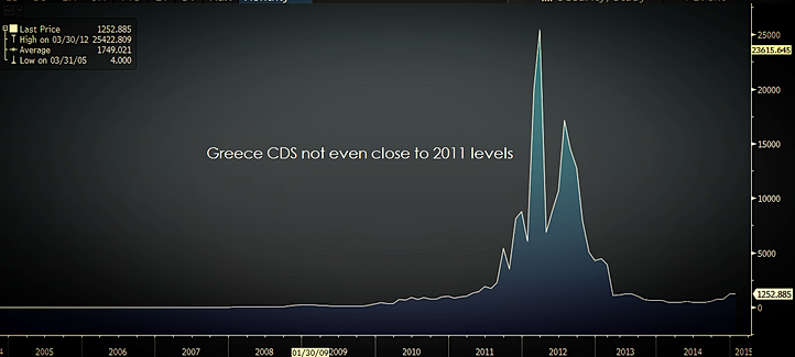 Επίσης αν η Ελλάδα συγκριθεί με το CDS της Βενεζουέλας στις 4592 μονάδες βάσης ή της Αργεντινής 2987 μονάδες βάσης ή τις 2224 μονάδες βάσης της Ουκρανίας....η Ελλάδα είναι σχεδόν "παράδεισος".
