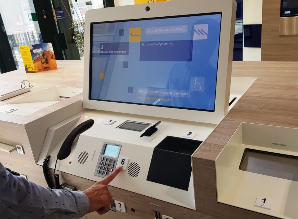 • Διενέργεια συναλλαγών ταμείου, για πρώτη φορά, χωρίς την ανάγκη παράστασης και υπογραφής μαρτύρων, με χρήση της υπηρεσίας «Ταμίας από Απόσταση», όπου ο πελάτης επικοινωνεί μέσω video κλήσης με έμπειρο ταμία της Τράπεζας. Πιο συγκεκριμένα, παρέχεται πλήρης καθοδήγηση από τον ταμία με τη χρήση της ειδικής σήμανσης, η οποία υποστηρίζει αρίθμηση σε γραφή Braille