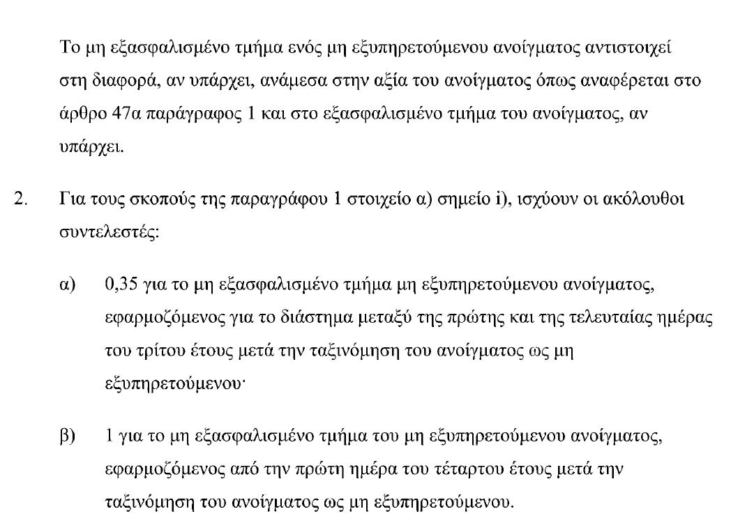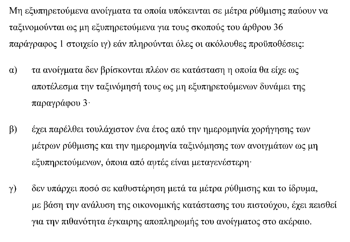 Επίσης, τα μη εξυπηρετούμενα ανοίγματα θα παραμένουν στους ισολογισμούς για τουλάχιστον ένα χρόνο μετά τη ρύθμιση: