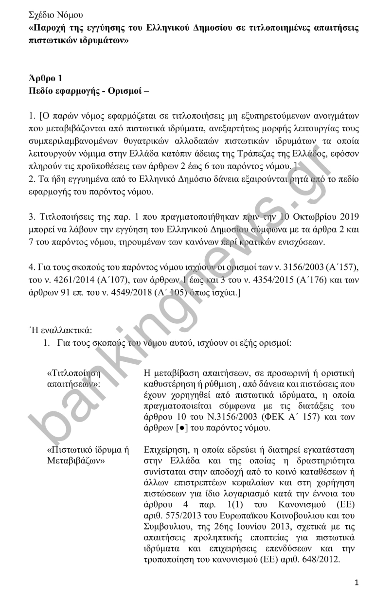 Την κατ' αρχήν έκδοση του Σχεδίου Νόμου Ηρακλής αποκαλύπτει το bankingnews.gr