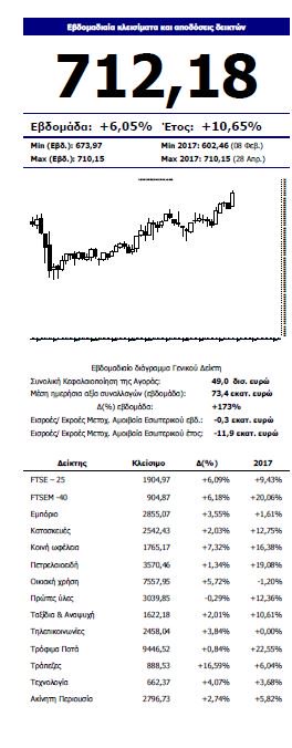 Ο Γενικός Δείκτης είχε 16 μήνες να δει το «7» μπροστά ενώ η εβδομάδα που πέρασε είχε τον καλύτερο μέσο ημερήσιο τζίρο σε επίπεδο εβδομάδας από την αρχή του έτους.