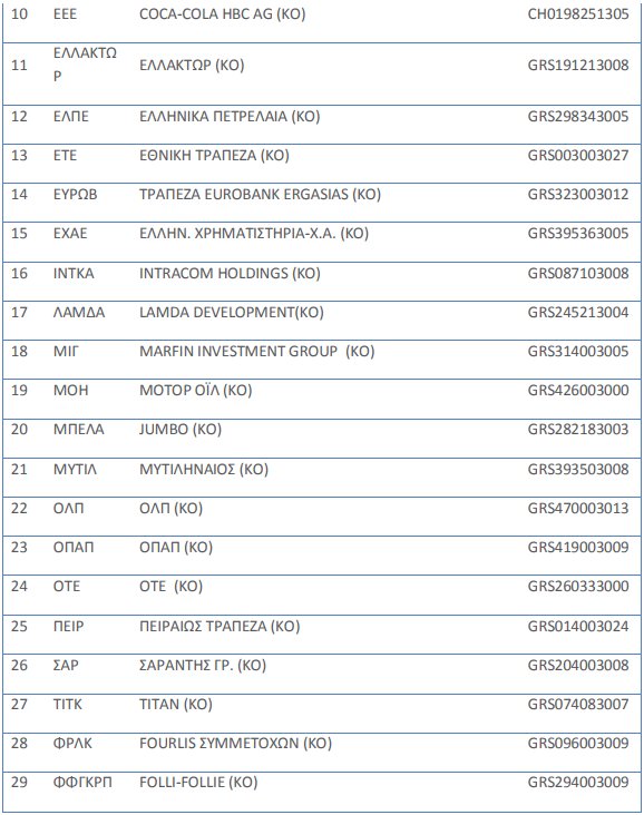 Σύμφωνα με την Απόφαση 22 «Ρύθμιση τεχνικών θεμάτων διαπραγμάτευσης στις Αγορές του Χ.Α.» της Δ.Ε. του Χ.Α., ανακοινώνεται το αποτέλεσμα της αξιολόγησης των μετοχών της Κύριας Αγοράς για το ημερολογιακό τρίμηνο Οκτώβριος – Δεκέμβριος 2017 (Πίνακες 1, 2, 3).
