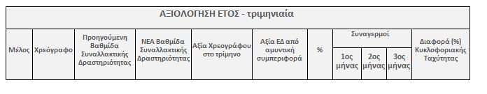 Πλέον όλα τα στοιχεία αξιολόγησης θα αναφέρονται αναλυτικά σύμφωνα με τον κατωτέρω πίνακα.