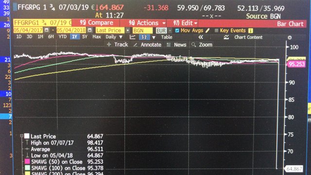 Το ομόλογο κάνει πράξη στα 64,8 σεντς με την προηγούμενη τιμή να είναι στα 95,2 όπως φαίνεται και στο σχετικό γράφημα.