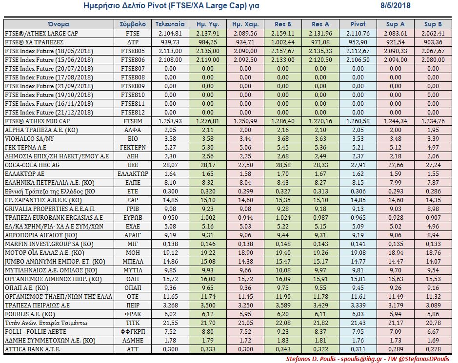 Χρηματιστήριο Δευτέρα 07/05/2018 - 23:49 Χ.Α: Τα Pivots για την σημερινή συνεδρίαση (Τρίτη 8/5) tags : γράφει : Δ.Ν. Που οριοθετούνται οι πρώτες στηρίξεις και αντιστάσεις για τις μετοχές του Ftse Τα Pivots για την σημερινή συνεδρίαση (Τρίτη 8 Μαίου)http://www.bankingnews.gr